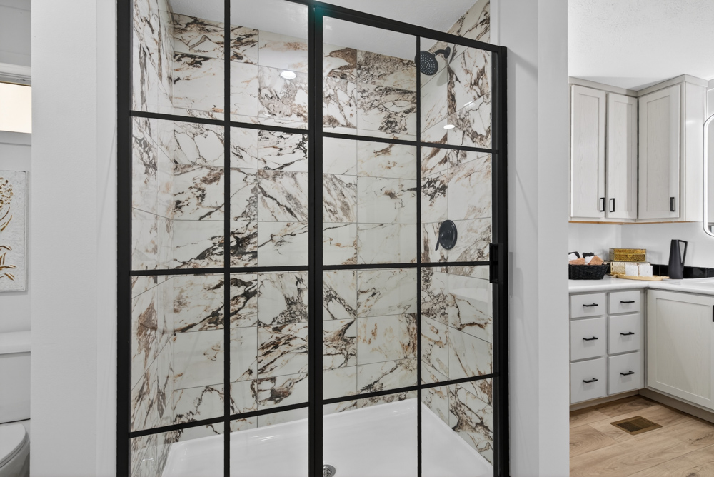 - Black Door to Shower with Grids