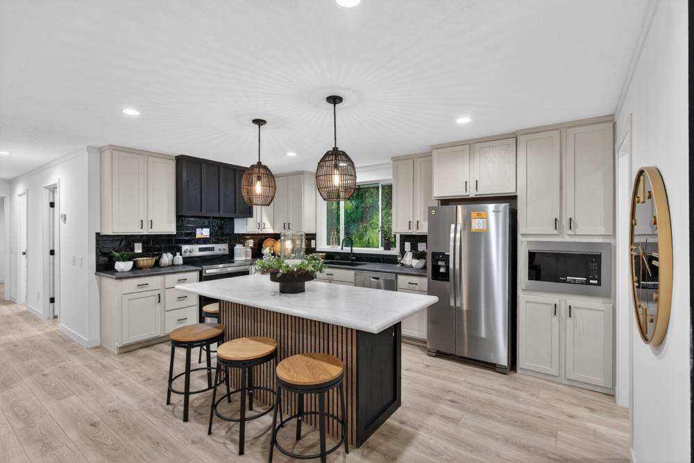 The Aura model has 4 Beds and 3 Baths. This 1728 square foot Double Wide HUD Manufactured Home is available for delivery in