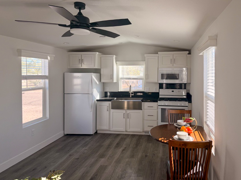 The Katy model has 1 Bed and 1 Bath. This 399 square foot Single Wide HUD Manufactured Home is available for delivery in Arizona, California, New Mexico, Colorado & Utah.