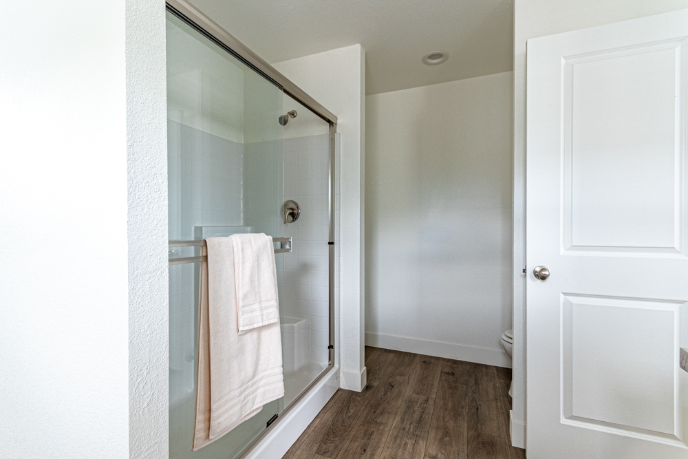 - Fiberglass Shower in Primary Bath with Glass Enclosure